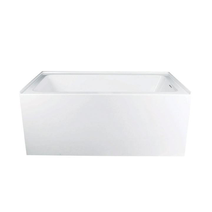 Baignoire alcôve 60" avec drain à droite Corps en acrylique durable renforcé de fibre de verre pour une solidité longue durée Finition blanche brillante résistante aux taches et à la décoloration Trop-plein découpé au laser et drain à bouton-poussoir installé en usine Pieds de nivellement réglables pour une installation facile