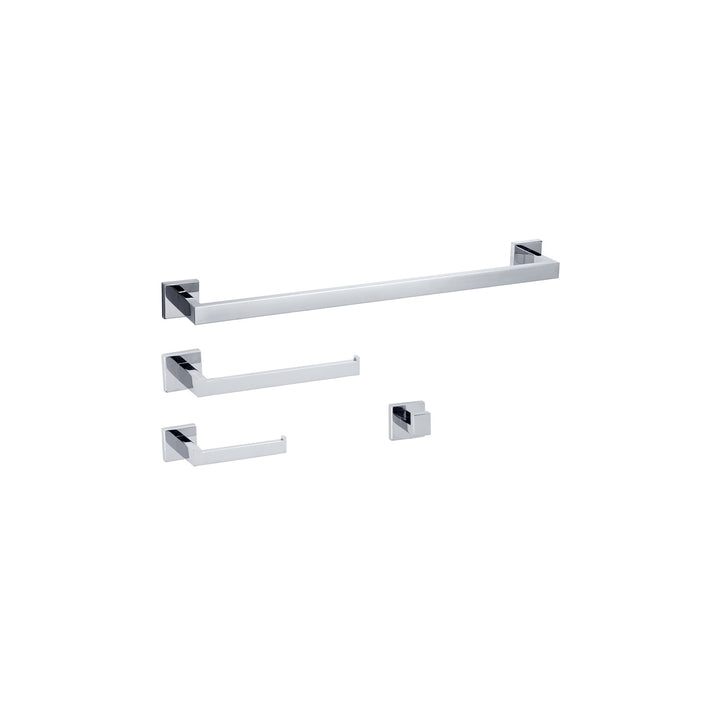 Complétez votre salle de bain avec cet ensemble d'accessoires assortis ! Cet ensemble comprend 4 articles essentiels pour votre salle de bain: porte-serviettes (25''), porte-serviettes, porte-papier hygiénique et crochet à peignoir.