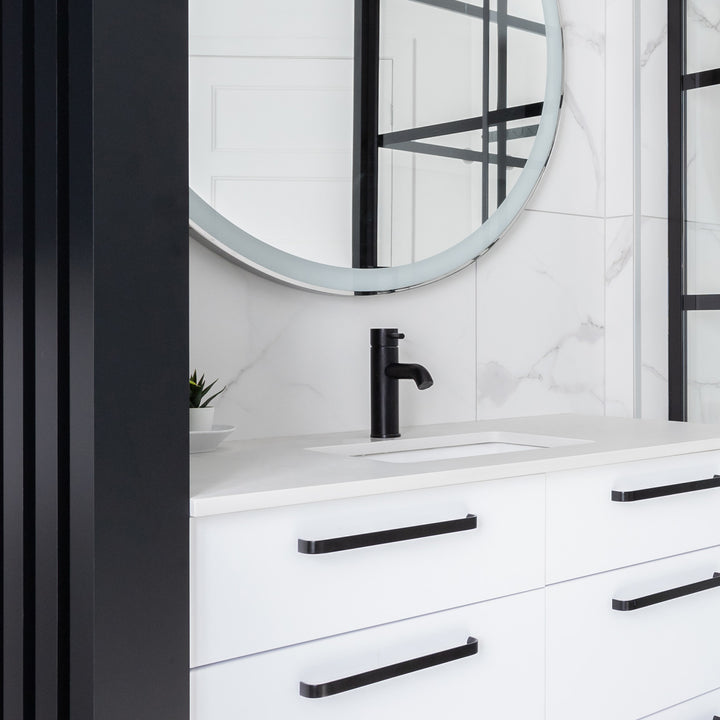 Soyez tendance avec le robinet REBECCA-BK. Ses formes géométriques accentuent toute salle de bain de style moderne. Sa cartouche en céramique et sa construction en laiton massif rendent le robinet très durable. Une poignée unique offre un contrôle sans effort du débit et de la température de l'eau.