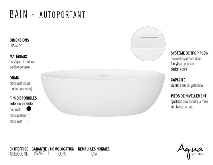 ["60\"","AVAILABILITY:Pre order","AVAILABILITY_In stock","badge_EN_Matte White","badge_FR_Blanc mat","blanc mat","Category_Aqua Canada","Category_Aqua Canada\/Collection Designer","Category_Aqua Canada\/Collection Designer\/Salle de bain","Category_Aqua Canada\/Collection Designer\/Salle de bain\/Baignoires","Category_Aqua Canada\/Salle de bain","Category_Aqua Canada\/Salle de bain\/Baignoires","Category_Aqua Canada\/Salle de bain\/Baignoires\/Autoportantes","Category_Aqua Canada\/Shop_By_Collection\/Par_fini","Category_Aqua Canada\/Shop_By_Collection\/Par_Style\/Designer","certifications_UPC","clearance_No","color_matte white","featured_Yes","marque_Agua Canada","material_Acrylique","matte white","new_No","no_promo","product_quote_No","promo_black-friday","sale_No","timershow_Yes","USA-NO-SHOW"]