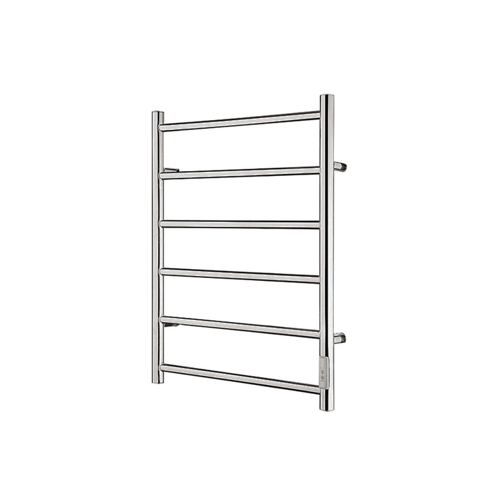 6 bars wall mounted heated towel rack Made of stainless steel for excellent durability. Direct wall installation or plugged into an electrical outlet Requires an electrician for installation Integrated timer with 3 modes: ON / OFF, 2H and 4H Power supply: 80W / 120V / 60HZ The average temperature of the surface of the bars: 40°C (104 °F) to 55°C (131 °F) Maximum temperature reached after 15 minutes Heating wire technology Suitable for 1-2 full-size towels (folded) Quiet Easy to install Round shape