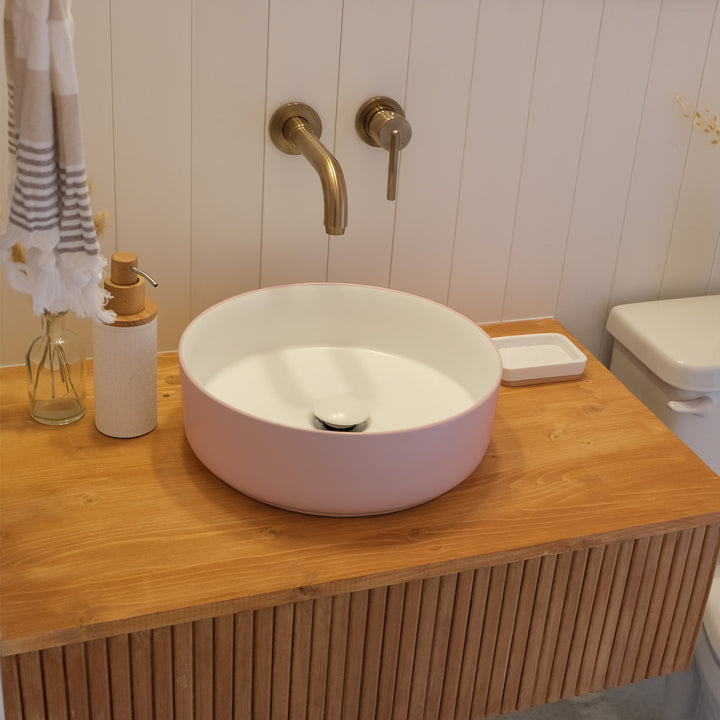 Made of porcelain, the above Matte Light Pink basin is easy to clean and maintain, and its central hole ensures maximum water drainage. It fits perfectly in any bathroom and gives it a modern look. Our bathroom sinks are the perfect answer to your needs and allow you to bring your best bathroom design ideas to life.