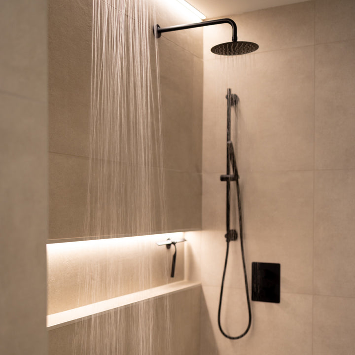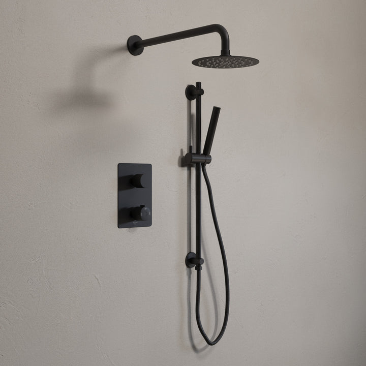 Thermostatic Shower Set Including Shower Head, Handshower On Rail And Valve In Matte Black