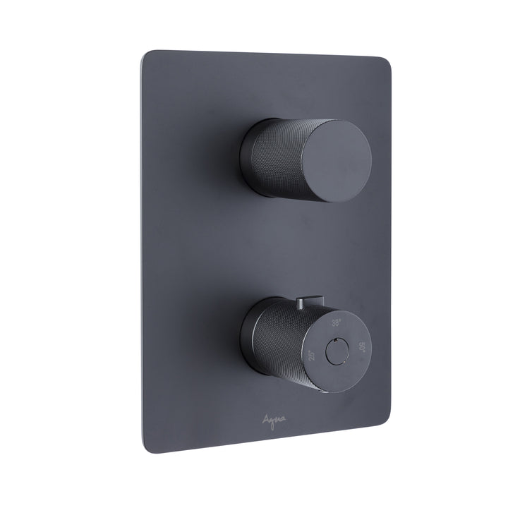 Rectangular thermostatic valve with round textured handles